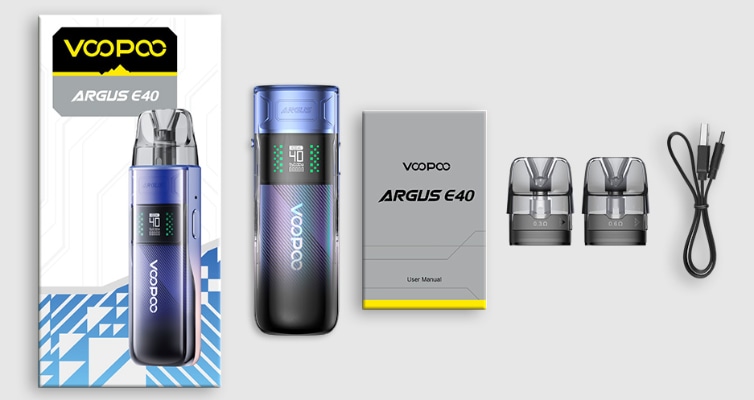 Le pod Argus E40 de Voopoo est une cigarette électronique qui allie performances et compacité dans un design élégant de 114 mm.